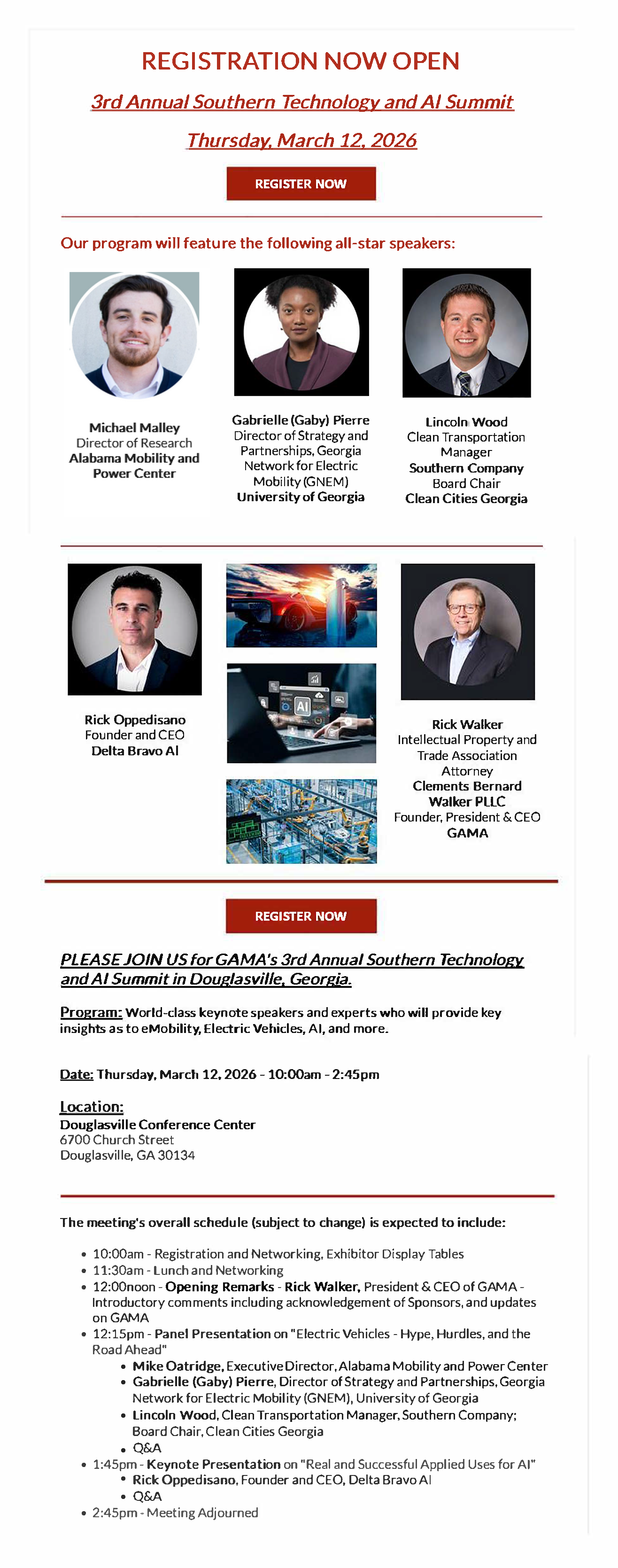 * "GAMA", "GEORGIA AUTOMOTIVE MANUFACTURERS ASSOCIATION", AND "DRIVING THE GROWTH OF GEORGIA'S AUTOMOTIVE INDUSTRY" ARE FEDERALLY REGISTERED TRADEMARKS OF GAMA